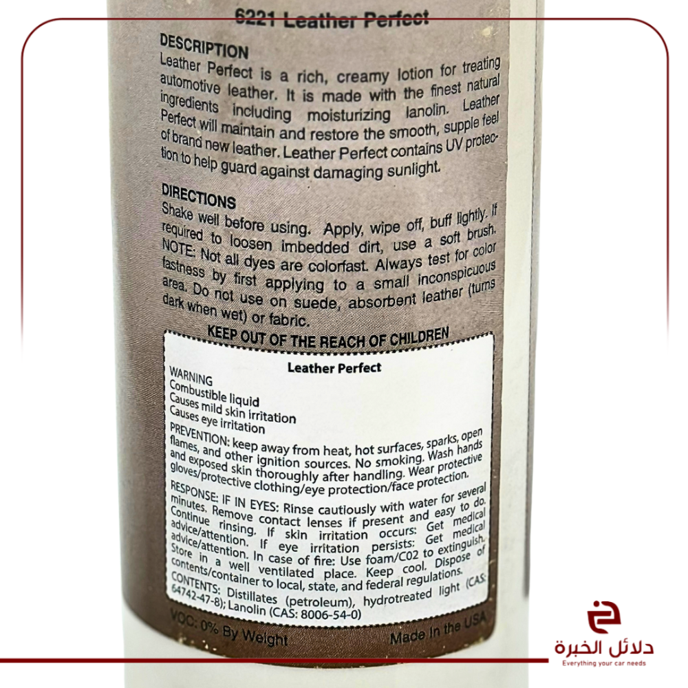 استمتع بالعناية المثالية للجلد مع ملمع المقاعد و الأجزاء الجلدية أرديكس Leather perfect، المستحضر الكريمي الفاخر المصمم لحماية وتجديد الجلود في السيارات، السفن، والمنازل.